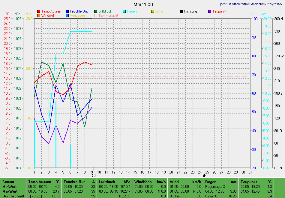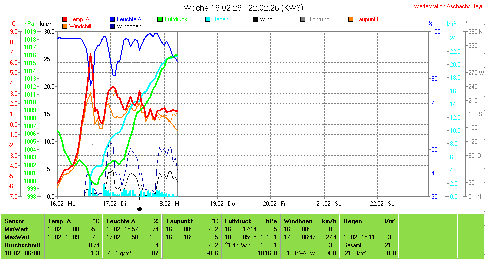 | Wetterübersicht - Aschach/Steyr - Oberösterreich   -   435 m über NN | ||||||||||||||||||||||||||||||||